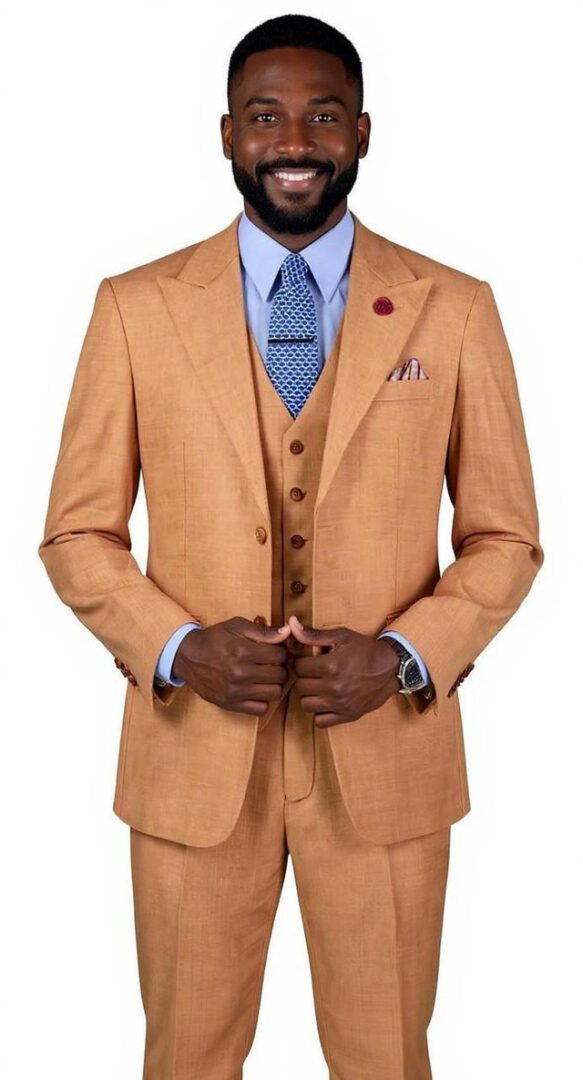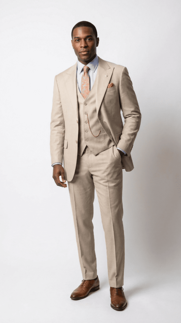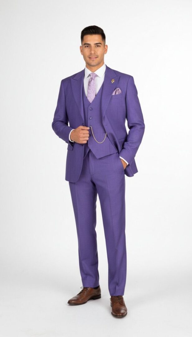 Matching Vest Included: Typically a 5-button single-breasted vest that coordinates stylistically with the jacket and pants.